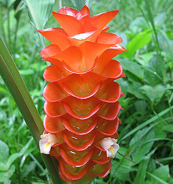 Colori caldi e brillanti per questa varietà di curcuma dai fiori rosso-arancio con la gola gialla. Va coltivata ad una temperatura non inferiore ai 10°C in un suolo moderatamente umido.
