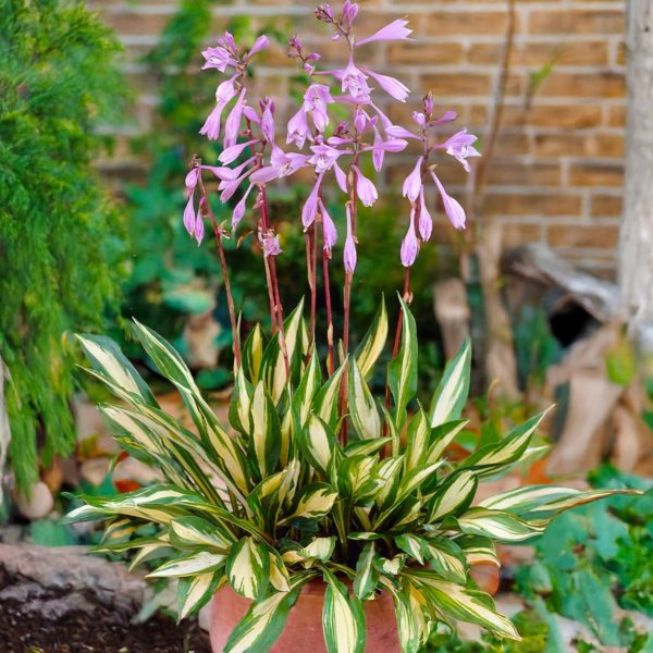 La HOSTA CHERRY BERRY è una cultivar di Hosta molto apprezzata per le sue caratteristiche ornamentali uniche. Presenta foglie variegate con margini verdi brillanti e un centro color crema. Durante l’estate, produce fiori viola pallido su steli rossi alti che aggiungono un ulteriore tocco di colore al giardino.