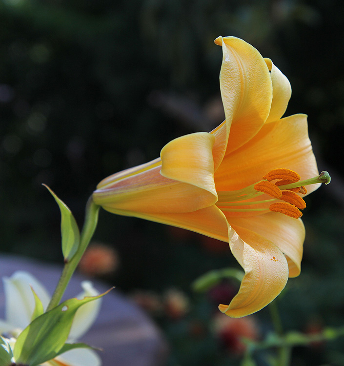 Fiori molto grandi, imbutiformi, di colore giallo-arancione albicocca.