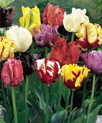 Tulipani di tipo pappagallo in miscuglio di colori.