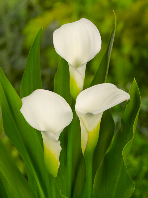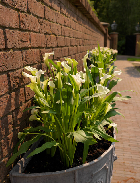 La Zantedeschia ‘Crystal Blush’ è una varietà di rara bellezza, celebre per la sua colorazione mutevole e delicata. I fiori, dalla tipica forma a imbuto slanciato, sbocciano in un bianco candido o avorio per poi “arrossire” gradualmente lungo i bordi, assumendo una romantica sfumatura rosa confetto man mano che maturano. È una delle calle più fiorifere e aggraziate della collezione.