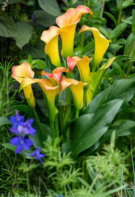 La Zantedeschia ‘Morning Sun’ è un’esplosione di calore ed energia. Fedele al suo nome, questa calla presenta fiori bicolore che sfumano da un giallo brillante al centro verso un arancio mandarino intenso sui bordi. È una varietà estremamente solare, capace di catturare l’attenzione in qualsiasi angolo del giardino o del terrazzo.