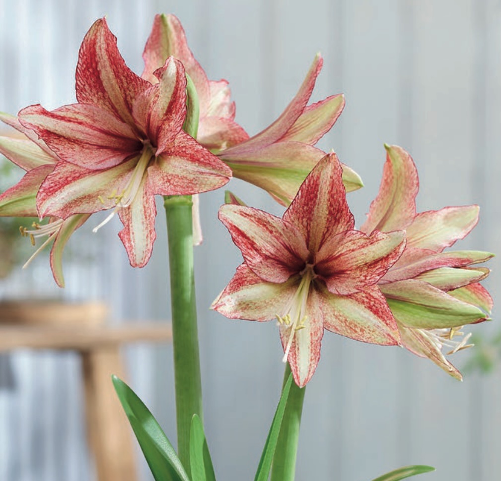 NOVITA’ L’Amaryllis (Hippeastrum) ‘Vincent’ è celebrato per il suo schema di colori molto delicato e sfumato. Non è un colore solido. I fiori presentano un affascinante motivo diffuso rosa-rosso (a volte descritto come rosa-cremisi) con striature o venature e sfumature che vanno dal bianco al crema-bianco al centro dei petali. L’effetto complessivo è elegante, quasi acquerellato, con una miscela di rosa e bianco. RUSTICO, adatto alla coltivazione in esterno anche in zone con temperature che scendono sporadicamente fino a -2°C.